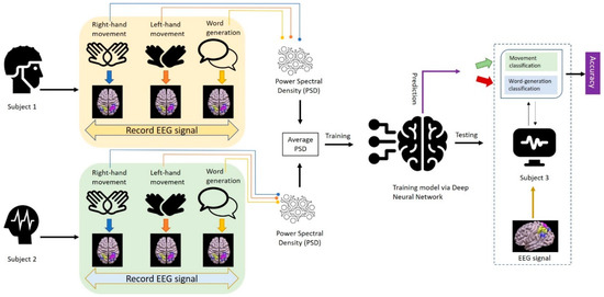 EEG classification signals have been widely used in different cognitive science and healthcare applications. This includes brain computer interface (BCI) studies, neuroscience and neurocognitive applications, mental task classification, etc. An effective application of EEG is to classify mental tasks while subjects are known and available, i.e., subject-dependent mental task classification. Moreover, researchers are looking at subject-independent mental task classifications. EEG plays a vital role in establishing interaction between various areas and hence analyses of the consequences of diseases on brain functioning suggest BCI for paraplegic individuals [1,2]. The BCI is based on recorded EEG signals from brain activity together with computational inferences. With upcoming accurate EEG data collection techniques, researchers have developed new frameworks to analyze the changes in the brain functioning of patients [3] at the time of the treatment. Therefore, future research of BCIs for people with health alignments is based on EEG signals that help them utilize existing mental and motor capabilities to regulate the system [4,5]. With this, the patient would be able to operate and eventually control support systems such as artificial limbs and wheelchairs.