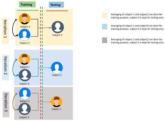 Illustration of how different subjects were considered for training and testing purposes. The figure also clearly conveys that the fold used for averaging the testing set was not used in the training phase.