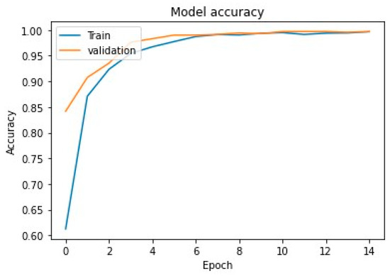 In addition, we have also analyzed the convergence of the proposed model throughout the testing and training phases. Figure 6 depicts that, as the training epoch progresses, the accuracy of the training set first slowly increases and then finally stabilizes. Similarly, Figure 7 depicts that, as the training epoch progresses, the loss in the training set slowly decreases, demonstrating that the proposed model eventually converges in training with decent stability.