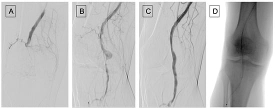 - Dinoto, E.; Ferlito, F.; Urso, F.; Pakeliani, D.; Bajardi, G.; Pecoraro, F. Mechanical rotational thrombectomy in long femoropopliteal artery and stent occlusion in COVID-19 patient: Case report. Int. J. Surg. Case Rep. 2021, 84, 106133. [Google Scholar] [CrossRef]
