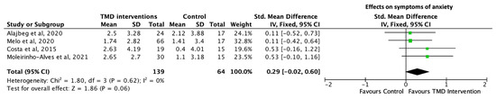 Psychological Outcomes on Anxiety and Depression after Interventions for Temporomandibular Disorders: A Systematic Review and Meta-Analysis
