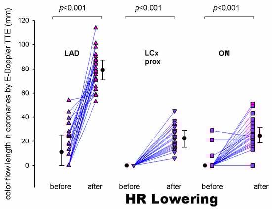 | # of Patients | Prox LAD (% st) | Mid-LAD (% st) | Distal LAD (% st) | Before HR Lowering | After HR Lowering | ||||