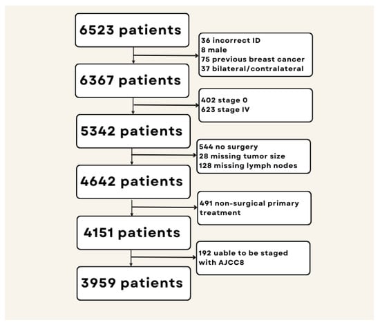 - Abdel-Rahman, O. Validation of the 8th AJCC prognostic staging system for breast cancer in a population-based setting. Breast Cancer Res. Treat 2018, 168, 269–275. [Google Scholar] [CrossRef]