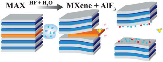 - Naguib, M.; Kurtoglu, M.; Presser, V.; Lu, J.; Niu, J.; Heon, M.; Hultman, L.; Gogotsi, Y.; Barsoum, M.W. Two-Dimensional Nanocrystals Produced by Exfoliation of Ti3AlC2. Adv. Mater. 2011, 23, 4248–4253. [Google Scholar] [CrossRef]
