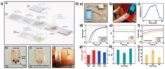 - Lei, Y.; Zhao, W.; Zhang, Y.; Jiang, Q.; He, J.-H.; Baeumner, A.J.; Wolfbeis, O.S.; Lin Wang, Z.; Salama, K.N.; Alshareef, H.N.; et al. A MXene-Based Wearable Biosensor System for High-Performance In Vitro Perspiration Analysis. Small 2019, 15, 1901190. [Google Scholar] [CrossRef] [PubMed]
