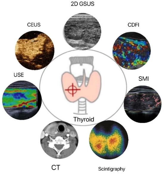 - Alexander, L.F.; Patel, N.J.; Caserta, M.P.; Robbin, M.L. Thyroid Ultrasound: Diffuse and Nodular Disease. Radiol. Clin. N. Am. 2020, 58, 1041–1057. [Google Scholar] [CrossRef]
