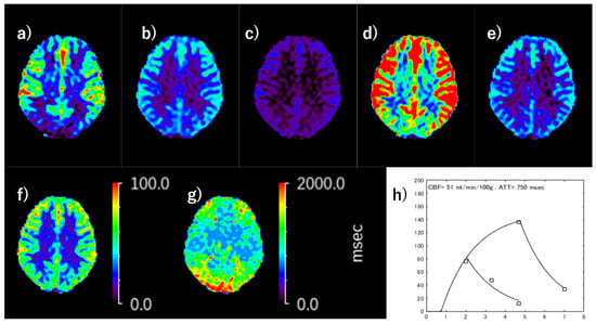 - Tsujikawa, T.; Kimura, H.; Matsuda, T.; Fujiwara, Y.; Isozaki, M.; Kikuta, K.; Okazawa, H. Arterial Transit Time Mapping Obtained by Pulsed Continuous 3D ASL Imaging with Multiple Post-Label Delay Acquisitions: Comparative Study with PET-CBF in Patients with Chronic Occlusive Cerebrovascular Disease. PLoS ONE 2016, 11, e0156005. [Google Scholar] [CrossRef]