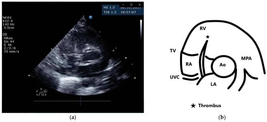 - Sheen, A.; De Oliveira, E.R.; Kim, R.W.; Parham, D.; Lakshmanan, A. Atrial Thrombus in a Neonate: A Diagnostic Challenge. AJP Rep. 2015, 5, e18–e21. [Google Scholar] [CrossRef]