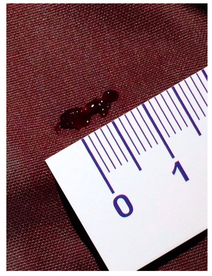 A female preterm AGA (appropriate for gestational age; birth-weight 710 g) infant was born vaginally at 24 + 5/7 weeks of gestation after premature uterine contractions with cervical incompetence. Membranes ruptured 17 h prior to delivery. The mother received prenatal steroids, magnesium sulfate and antenatal antibiotics. The baby was vigorous at delivery and was immediately transferred to the neonatal intensive care unit (NICU) on nasal continuous positive airway pressure (CPAP) support. In the NICU, she was placed on non-invasive nasal intermittent positive pressure ventilation with an FiO2 of 0.21, and umbilical venous and arterial catheters were inserted for access, blood sampling and monitoring. Heparin 1 unit per ml normal saline, at a rate of 0.3 mL/h, was continuously run through the umbilical arterial catheter. However, heparin was neither run through the umbilical venous line nor added to the parenteral nutrition solutions given continuously via the umbilical venous line [12,13]. Abdominal and chest radiographs showed signs of mild respiratory distress syndrome (RDS) and appropriate positions of umbilical catheters’ tips (venous above the diaphragm at T8–9 thoracic spine level and arterial at T7–8). The baby was started on full parenteral nutrition, followed by the introduction of minimal enteral feedings of mother’s milk which were well tolerated and gradually increased. The infant had no polycythemia. Antibiotics were discontinued after 48 h, as blood cultures were negative. The baby continued to be hemodynamically stable with a stable respiratory status, did not need surfactant replacement therapy and required minimal non-invasive respiratory support with no supplemental oxygen. At 90 h of life, an echocardiogram was performed to assess for patent ductus arteriosus (PDA) due to active precordium and a systolic murmur. A two-dimensional echocardiographic study showed a widely open ductus arteriosus and a 9 mm long mobile thread-like echo-dense structure extending from the fossa ovalis and protruding to the inflow of the right ventricle, consistent with a thrombus (Figure 1, Video S1 (Supplementary Materials)). The umbilical venous catheter (UVC) was seen in the right atrium at the entrance of the inferior vena cava and the catheter tip was in close proximity, but not in contact with, the thrombus (Figure 2). Since the catheter tip was adjacent to the thrombus, an aspiration thrombectomy was attempted. Three 1.5 mL blood samples were drawn using 2 mL syringes through the umbilical vein 4F catheter (double lumen umbilical catheter, Ref. 1272.04; Vygon, Ecouen, France), with the catheter tip close to the thrombus. The aspiration was slow and gentle, with no added pressure required. In the second blood sample, a 9mm thrombus was detected (Figure 3). Echocardiography confirmed the disappearance of the right atrial thrombus (Video S2). Since the thrombus was presumed to be catheter-related, the catheter was removed and traces of thrombi were noticed in the lumen.