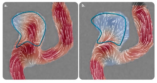 Sforza et al. [43] performed a literature review and concluded that the physiological blood flow parameters that regulate aneurysm morphology and natural history are poorly understood. It is necessary to model intra-aneurysmal hemodynamics using realistic aneurysm geometries because aneurysm geometry is one of the most critical factors for determining the aneurysm flow patterns that influence aneurysm progression.