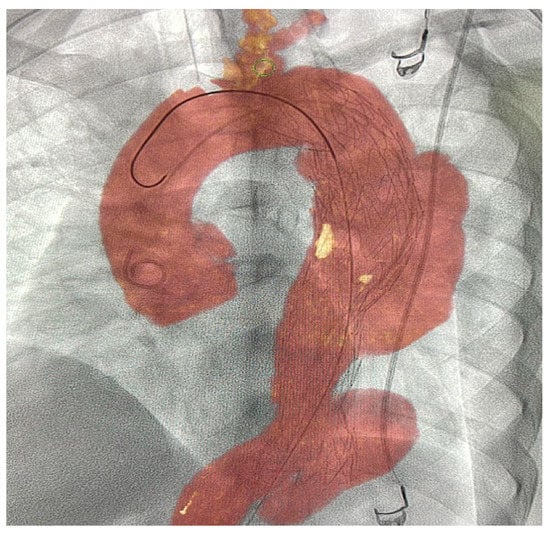 - Sailer, A.M.; De Haan, M.W.; Peppelenbosch, A.G.; Jacobs, M.J.; Wildberger, J.E.; Schurink, G.W. CTA with fluoroscopy image fusion guidance in endovascular complex aortic aneurysm repair. Eur. J. Vasc. Endovasc. Surg. 2014, 47, 349–356. [Google Scholar] [CrossRef] [PubMed]