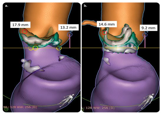 - Vaitkus, P.T.; Wang, D.D.; Greenbaum, A.; Guerrero, M.; O’Neill, W. Assessment of a novel software tool in the selection of aortic valve prosthesis size for transcatheter aortic valve replacement. J. Invasive Cardiol. 2014, 26, 328–332. Available online: https://www.hmpgloballearningnetwork.com/site/jic/articles/assessment-novel-software-tool (accessed on 19 November 2022). [PubMed]