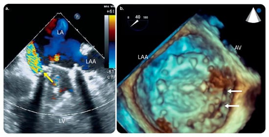 - Kim, B.H.; Koh, Y.S.; Lee, K.Y.; Chung, W.B. Three-dimensional EchoNavigator system guided transcatheter closure of paravalvular leakage. J. Cardiovasc. Imaging 2019, 27, 227–229. [Google Scholar] [CrossRef]
