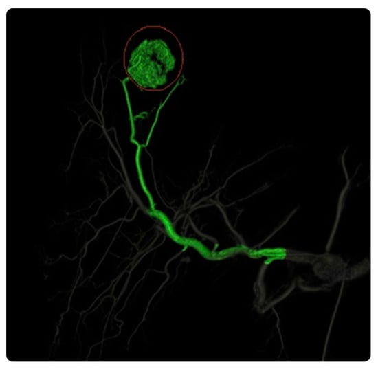 - Ronot, M.; Abdel-Rehim, M.; Hakimé, A.; Kuoch, V.; Roux, M.; Chiaradia, M.; Vilgrain, V.; de Baere, T.; Deschamps, F. Cone-beam CT angiography for determination of tumor-feeding vessels during chemoembolization of liver tumors: Comparison of conventional and dedicated-software analysis. J. Vasc. Interv. Radiol. 2016, 27, 32–38. [Google Scholar] [CrossRef] [PubMed]