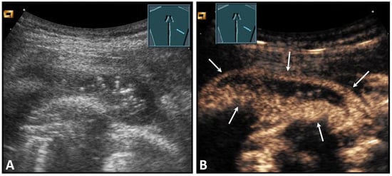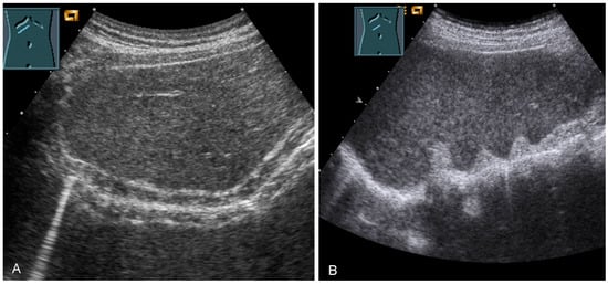 - Seitz, K.S.; Andreas, S.; Rettenmaier, G.; Becker, D.; Becker, H.D.; Bernatik, T.; Blank, W.; Bodner, G.; Bunk, A.; Dirks, K.; et al. Klinische Sonographie und Sonographische Differenzialdiagnose; Georg Thieme Verlag KG: Stuttgart, Germany, 2008. [Google Scholar] [CrossRef]