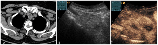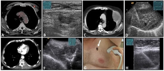 - Trenker, C.; Dietrich, C.F.; Holland, A.; Schulte, F.; Michel, C.; Görg, C. Mediastinal Masses in Contrast-Enhanced Ultrasound—Retrospective Analysis of 58 Cases. J. Ultrasound Med. 2020, 40, 1023–1030. [Google Scholar] [CrossRef] [PubMed]