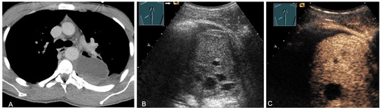 - Yusuf, G.T.; Fang, C.; Tran, S.; Rao, D.; Bartlett-Pestell, S.; Stefanidis, K.; Huang, D.Y.; Sidhu, P.S. A pictorial review of the utility of CEUS in thoracic biopsies. Insights Into Imaging 2021, 12, 9. [Google Scholar] [CrossRef]