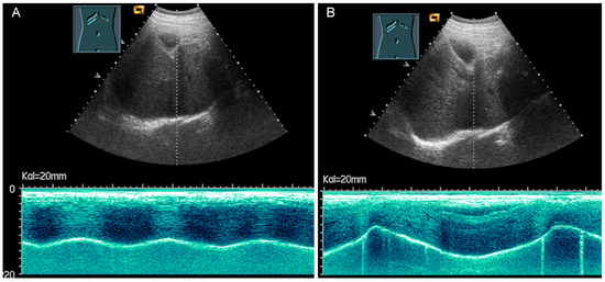 - Harris, R.S.; Giovannetti, M.; Kim, B.K. Normal ventilatory movement of the right hemidiaphragm studied by ultrasonography and pneumotachography. Radiology 1983, 146, 141–144. [Google Scholar] [CrossRef]
