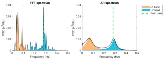 HRV spectrum estimates using FFT-based Welch’s periodogram method (left) and autoregressive (AR) modeling-based spectrum estimation method.