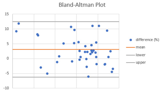 When compared, the VOCAL™ contour mode technique and the geometric formula of the cylinder using the dataset obtained by a 3D scan showed a good agreement (mean percentage of difference = 2.71 at Bland–Altman plot (Figure 6).