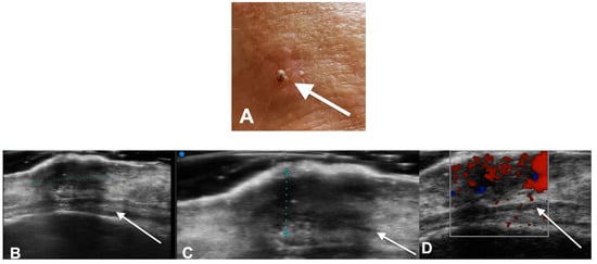 - Laverde-Saad, A.; Simard, A.; Nassim, D.; Jfri, A.; Alajmi, A.; O’Brien, E.; Wortsman, X.J.D. Performance of Ultrasound for Identifying Morphological Characteristics and Thickness of Cutaneous Basal Cell Carcinoma: A Systematic Review. Dermatology 2022, 238, 692–710. [Google Scholar] [CrossRef]