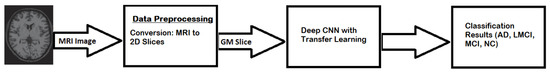 - Mehmood, A.; Yang, S.; Feng, Z.; Wang, M.; Ahmad, A.S.; Khan, R.; Maqsood, M.; Yaqub, M. A transfer learning approach for early diagnosis of Alzheimer’s disease on MRI images. Neuroscience 2021, 460, 43–52. [Google Scholar] [CrossRef] [PubMed]