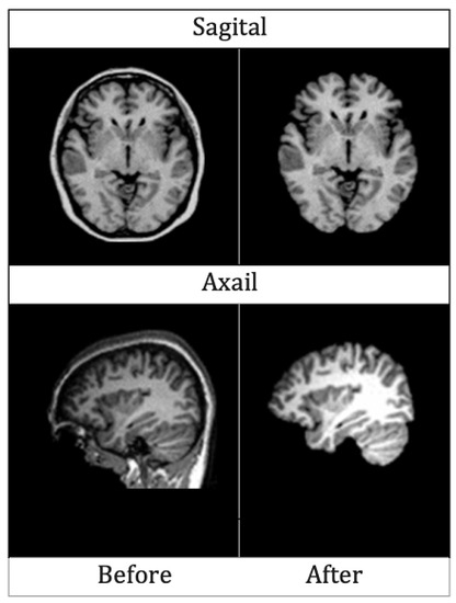 - Atkins, M.S.; Mackiewich, B.T. Fully automatic segmentation of the brain in MRI. IEEE Trans. Med. Imaging 1998, 17, 98–107. [Google Scholar] [CrossRef]
