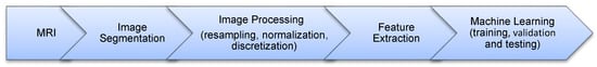 Figure 3 shows the flow diagram of a computer-aided diagnosis system, that begins with MRI procurement and finishes with ML analysis [].