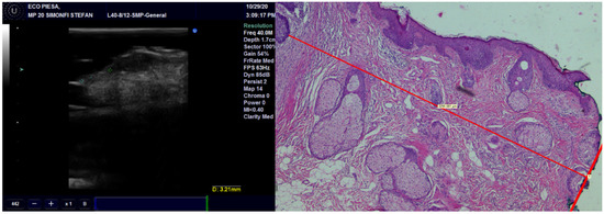 - Nassiri-Kashani, M.; Sadr, B.; Fanian, F.; Kamyab, K.; Noormohammadpour, P.; Shahshahani, M.M.; Zartab, H.; Naghizadeh, M.M.; Sarraf-Yazdy, M.; Firooz, A. Pre-operative assessment of basal cell carcinoma dimensions using high frequency ultrasonography and its correlation with histopathology. Skin Res. Technol. 2013, 19, e132–e138. [Google Scholar] [CrossRef] [PubMed]