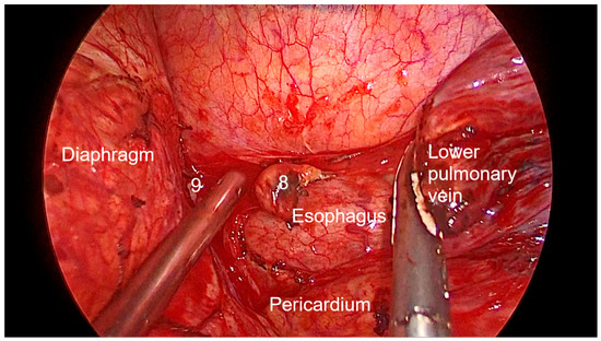 • Recommendations: In small thoracic cavities or with a highly inserted diaphragm, it is useful to push it away with a suction or sponge stick to clearly visualise the paraoesophageal groove.