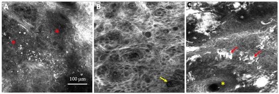 The use of EVCM has shown high sensitivity (79.8%) and specificity (95.8%) with a 95.7% negative predictive value for the detection of BCC in surgical margins during Mohs surgery [55]. Moreover, EVCM can be used to subtype residual BCCs reliably with a high diagnostic accuracy (90% for superficial BCC, 83% for nodular BCC, and 86% for infiltrative BCC) [56]. EVCM is also a useful tool to evaluate the surgical margin assessment of cutaneous SCC [22,57]. Horn et al. demonstrated that EVCM has an overall high sensitivity of 95% and specificity of 96.25% for the diagnosis of SCC in freshly excised skin lesions [58].