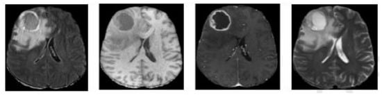 Medical imaging analysis comes to help patients and saves people’s lives by diagnosis using new safety technology, such as positron emission tomography (PET), computed tomography (CT), and magnetic resonance imaging (MRI). T1-weighted, T2-weighted, T1-weighted with contrast enhancement (T1ce), and fluid-attenuated inversion recovery (FLAIR) are the four modalities of MRI images, as seen in Figure 1, and each one is in 2D slices form and puts all the slices together produce a 3D form of the brain. Utilization of multiple modalities and sequences to segment the brain tumor can improve results and provide complementary features on regions of different sub-gliomas. Semi-automatic and automatic approaches have been proposed in the brain tumor segmentation area and the automatic one showed its performance and a high potential for more accurate and reliable results.