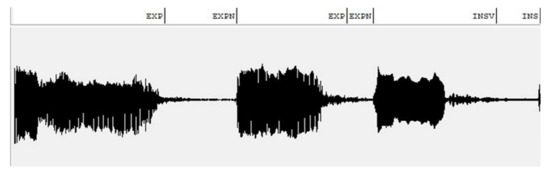 The cry samples in our dataset were labeled by a group of researchers. An example of the assigned cry signal units is depicted in Figure 1. Different segments of the cry signal have been margined, and matching labels have been attached via WaveSurfer (version 1.8.8, Stockholm, Sweden), presented in our previous works [10,54].