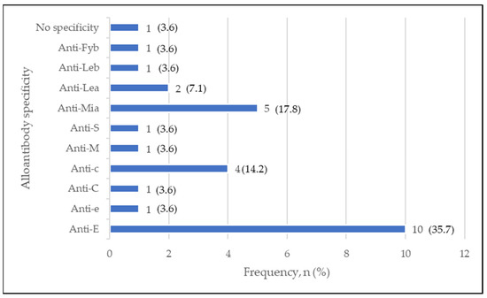 Frequency of 28 RBC alloantibodies detected in CLD.