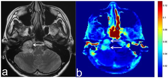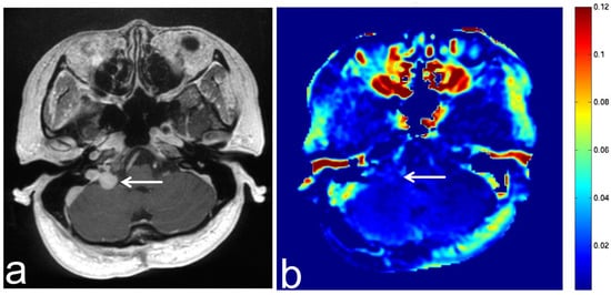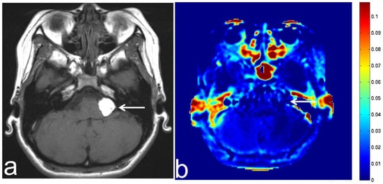 - Koike, H.; Morikawa, M.; Ishimaru, H.; Ideguchi, R.; Uetani, M.; Hiu, T.; Matsuo, T.; Miyoshi, M. Quantitative Chemical Exchange Saturation Transfer Imaging of Amide Proton Transfer Differentiates between Cerebellopontine Angle Schwannoma and Meningioma: Preliminary Results. Int. J. Mol. Sci. 2022, 23, 10187. [Google Scholar] [CrossRef] [PubMed]