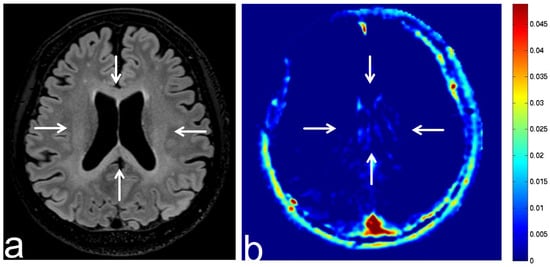 - Liu, Z.; Pardini, M.; Yaldizli, Ö.; Sethi, V.; Muhlert, N.; Wheeler-Kingshott, C.A.; Samson, R.S.; Miller, D.H.; Chard, D.T. Magnetization transfer ratio measures in normal-appearing white matter show periventricular gradient abnormalities in multiple sclerosis. Brain 2015, 138, 1239–1246. [Google Scholar] [CrossRef] [PubMed]