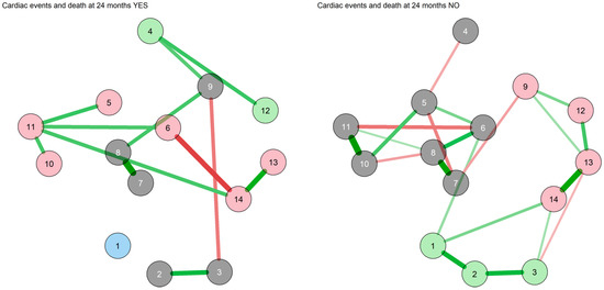 When adjusting the analyses for age, we observed difficulties in estimating the network because a non-positive definite matrix was obtained for the group with MACE at follow-up.