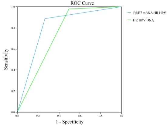 - Pruski, D.; Millert-Kalinska, S.; Lewek, A.; Kedzia, W. Sensitivity and Specificity of HR HPV E6/E7 MRNA Test in Detecting Cervical Squamous Intraepithelial Lesion and Cervical Cancer. Ginekol. Pol. 2019, 90, 66–71. [Google Scholar] [CrossRef] [PubMed]