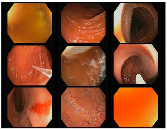 - Pogorelov, K.; Schmidt, P.T.; Riegler, M.; Halvorsen, P.; Randel, K.R.; Griwodz, C.; Eskeland, S.L.; de Lange, T.; Johansen, D.; Spampinato, C.; et al. KVASIR: A Multi-Class Image Dataset for Computer Aided Gastrointestinal Disease Detection. In Proceedings of the 8th ACM on Multimedia Systems Conference—MMSys’17, Taipei, Taiwan, 20–23 June 2017; ACM Press: Taipei, Taiwan, 2017; pp. 164–169. [Google Scholar]