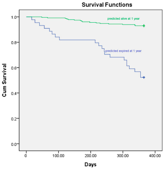 We defined SEN as the number of patients who were correctly predicted to die within one year divided by the total number of patients that died within one year; thus, sensitivity was an indicator of reliability. The prediction performances of the proposed models are detailed in the tables in the Appendix A.