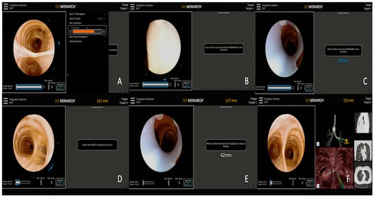 - Cicenia, J.; Bhadra, K.; Sethi, S.; Nader, D.A.; Whitten, P.; Hogarth, D.K. Augmented Fluoroscopy: A New and Novel Navigation Platform for Peripheral Bronchoscopy. J. Bronchol. Interv. Pulmonol. 2021, 28, 116–123. [Google Scholar] [CrossRef] [PubMed]