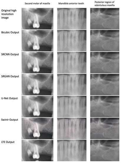 Mohammad-Rahimi, H.; Vinayahalingam, S.; Mahmoudinia, E.; Soltani, P.; Bergé, S.J.; Krois, J.; Schwendicke, F. Super-Resolution of Dental Panoramic Radiographs Using Deep Learning: A Pilot Study. Diagnostics 2023, 13, 996. https://doi.org/10.3390/diagnostics13050996