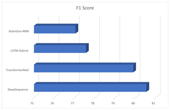 The table shows that DeepSequence had the highest F1 Score of 80.55, followed by TransformerMail with a score of 85.01. LSTM-Hybrid and Attention-RNN had lower scores of 77.57 and 77.05, respectively. This suggests that DeepSequence had the best performance among the participants, with TransformerMail being a close second. The scores of LSTM-Hybrids and Attention-RNN were lower but still relatively close to each other.