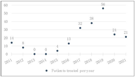 Total number of patients with advanced or metastatic melanoma who received treatment with ICB at BCH, by year.