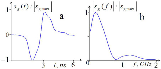 Shape of the generator pulse (a) and its frequency spectrum (b).