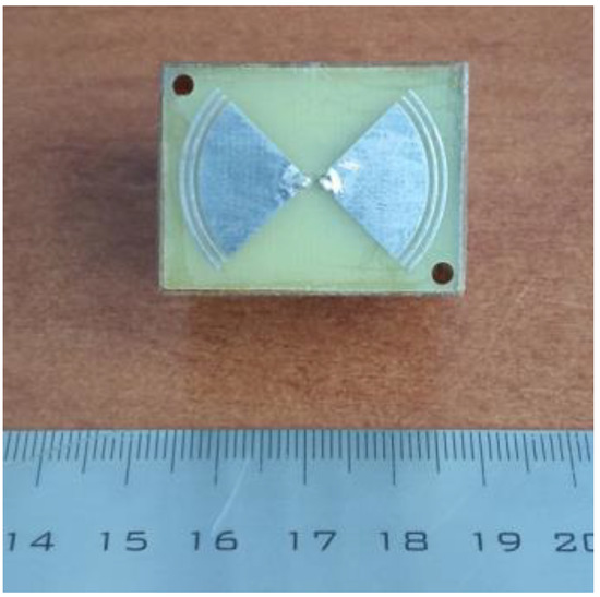 In this paper, we applied pulse sounding; however, since in our case the pulse length is comparable to the probing depth, we applied not only the pulse spectrum analysis [31] but also a new method based on the analysis of the shape of the scattered pulses itself. Measurements were carried out with the transceiver system that includes two identical bow-tie antennas. The sharp localization of currents on the emitting antenna produces a broad k-space spectrum of the probing field that provides a high-depth resolution of subsurface inhomogeneities in the near zone (see Figure A1 in Appendix A). The same antennas were used in our previous studies on the near-field subsurface diagnostics [28,29,30,31,33].