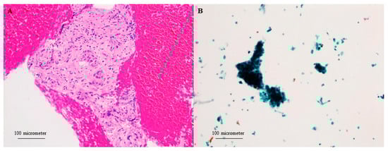 Scanned magnification (200×) image of hematoxylin-eosin staining (A) and liquid-based cytology (B) using a 22-gauge needle for pancreatic adenocarcinoma.
