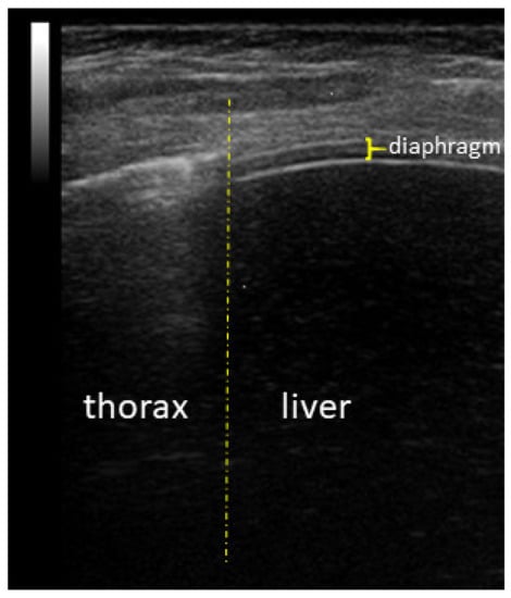10. El-Halaby, H.; Abdel-Hady, H.; Alsawah, G.; Abdelrahman, A.; El-Tahan, H. Sonographic evaluation of diaphragmatic excursion and thickness in healthy infants and children. J. Ultrasound Med. 2016, 35, 167–175. [Google Scholar] [CrossRef] [PubMed]