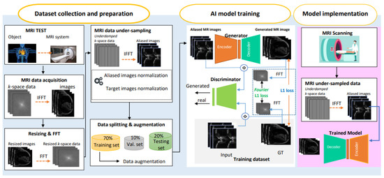 In this section, we describe the abstract view of the proposed AI-based framework for cardiac MR under-sampled image reconstruction using the hybrid spatial and frequency loss function. The proposed end-to-end workflow is presented in Figure 1 and is explained as follows:
