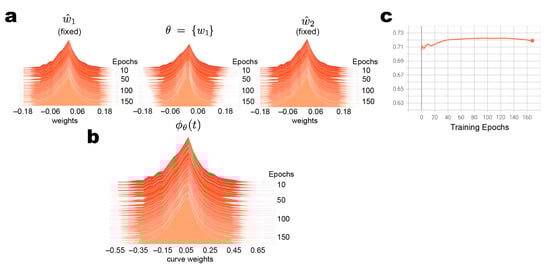 Given the two resulting models, the next step was to connect these two optima through a learned PCA subspace representation [40]. Briefly, each SWA-ResNet model serves as a fixed end-points ( and ) and the free center parameter is optimized such that the curve is fit across a high accuracy space [40]. The final 3-point quadratic Bezier curve () is generated using the equation: